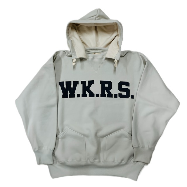 ※個人採寸につき多少の誤差はご了承くださいませ。 また、部分的に生産時に発生するオイルが付いている場合がございますが、 当店では、その部分も個性として販売致しております。 ご了承いただいた上での御購入をお願い致します。 『Workers』 ブランドのご紹介をさせていただきます。 岡山県を拠点にワーク・トラッド・ミリタリーを中心としたアイテムを展開するアパレルブランド。古着独特の雰囲気を好むデザイナーは、実際の古着を研究するために、 その製品がつくられていたメーカーや建物まで足を運び、 歴史や資料を調べ上げアイテムづくりのヒントにしています。 カナダ・バンクーバーの書籍 【INVENTORY VOLUME 04 NUMBER 07 FALL-WINTER 2012】にもデザイナー舘野さんが取り上げられています。全文英語です。気になられる方、当店にてご覧くださいませ。 「 Trico Sweat,Full Zip」 WORKERらしさのあるパーカだな…なんて思いました。 WORKERSなんで当たりまえですが… アームホールが広く、パーカ内にもしっかりと着こめます。 フワモコな裏起毛生地はとても優しく、快適な着心地を提供してくれています。 フードは後ろにだらっと垂れません。フード内には別生地が張り合わせてあり、 贅沢な感じもあります。 WORKERSのスエット。生地は元々2016年頃に開発した 「綿100/表30番・中30番・裏7番で、裏の糸ループを短く編み、さらに起毛をかけた本格的冬用スエット生地。18ゲージでガチガチに目を詰めて編んでいるので型崩れしにくい。重さ15オンス程あり、いわゆる「超ヘビーウエイトスエット」でも化繊は使っていないのでしなやか。身頃、生地ヨコ使い、リバースタイプ。元来、スエット生地はタテ方向に縮みが出やすい。だからヨコ方向で身頃を裁断。そうなるとヨコ方向に縮むが、脇に伸縮性のあるリブを切替てつけてある。身頃がヨコ方向に縮んでもリブの伸縮性で対応。本家は化繊混のガザッとした風合いに対し、WORKERSは綿100%でしなやか。今年は袖口にWワッペンも作ってみました。これが大変でした。実は数年前からデザインして試作するもうまくまとまらない。縫い付けやすく、且つ、W周りのフチが太くなりすぎないように。結局、岡山の父、岡田ネームの岡田さんの所に行って刺繍の紋型みながら修正して試し縫い、修正して試し縫い、結果、中々良い形に収まりました。 素材 綿100%(COTTON 100%) 生産国 日本 Made in Japan サイズスペック S サイズ 肩幅 45cm 身幅 110cm 袖丈 58cm 着丈 67cm M サイズ 肩幅 48cm 身幅 120cm 袖丈 59cm 着丈 68cm L サイズ 肩幅 51cm 身幅 134cm 袖丈 59cm 着丈 68cm