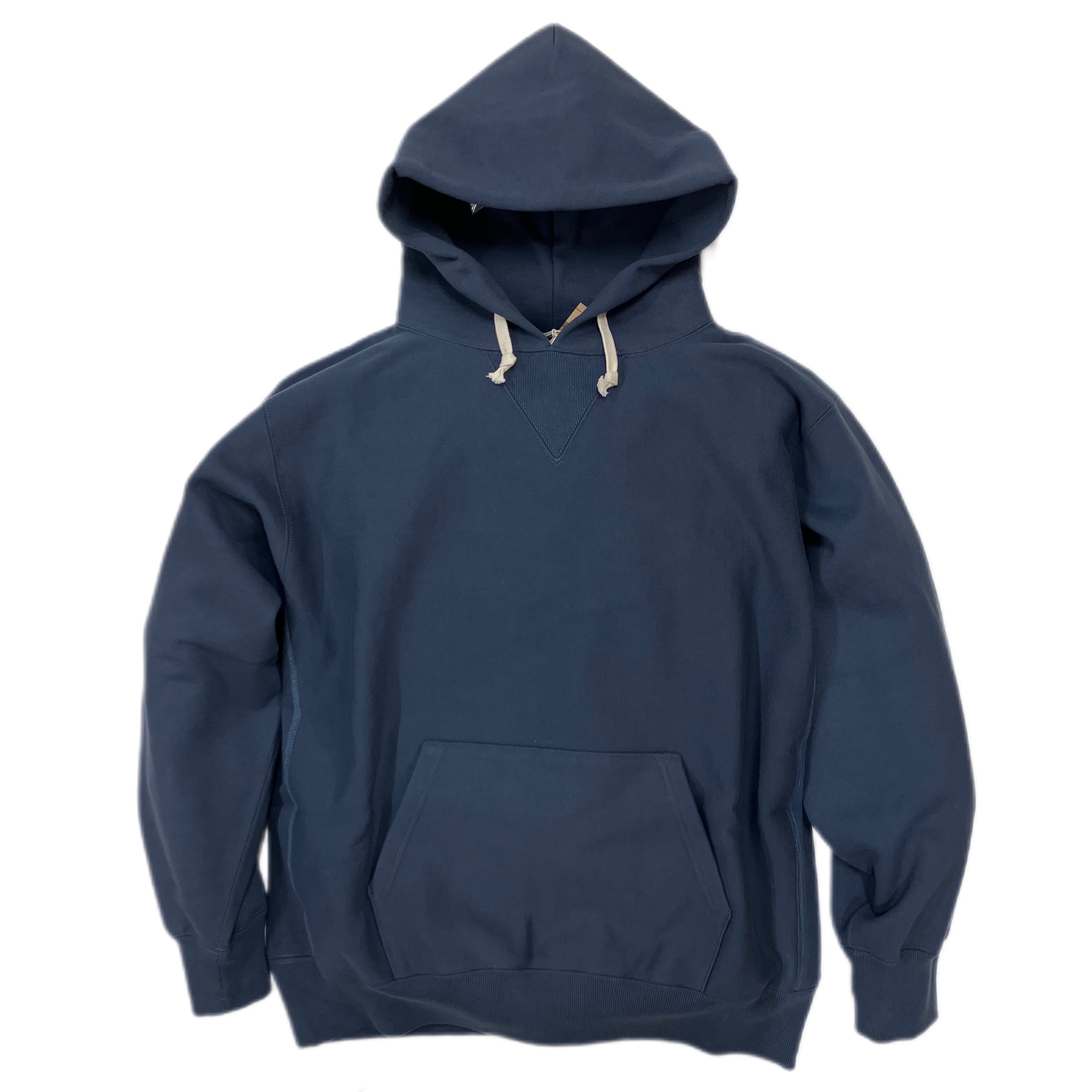 WORKERSさんの新作は80年代〜90年代位のトリコタグのクルーネックとパーカが元ネタです。前Vは、はめ込み式のガゼット。スエット生地は縦方向↑に縮みが出やすいという事もあり、身頃は横方向←→で裁断してあります。脇に伸縮性のあるリブパーツを切り替えでセット。身頃が横方向→←に縮んでも大丈夫という構造のスエットです。