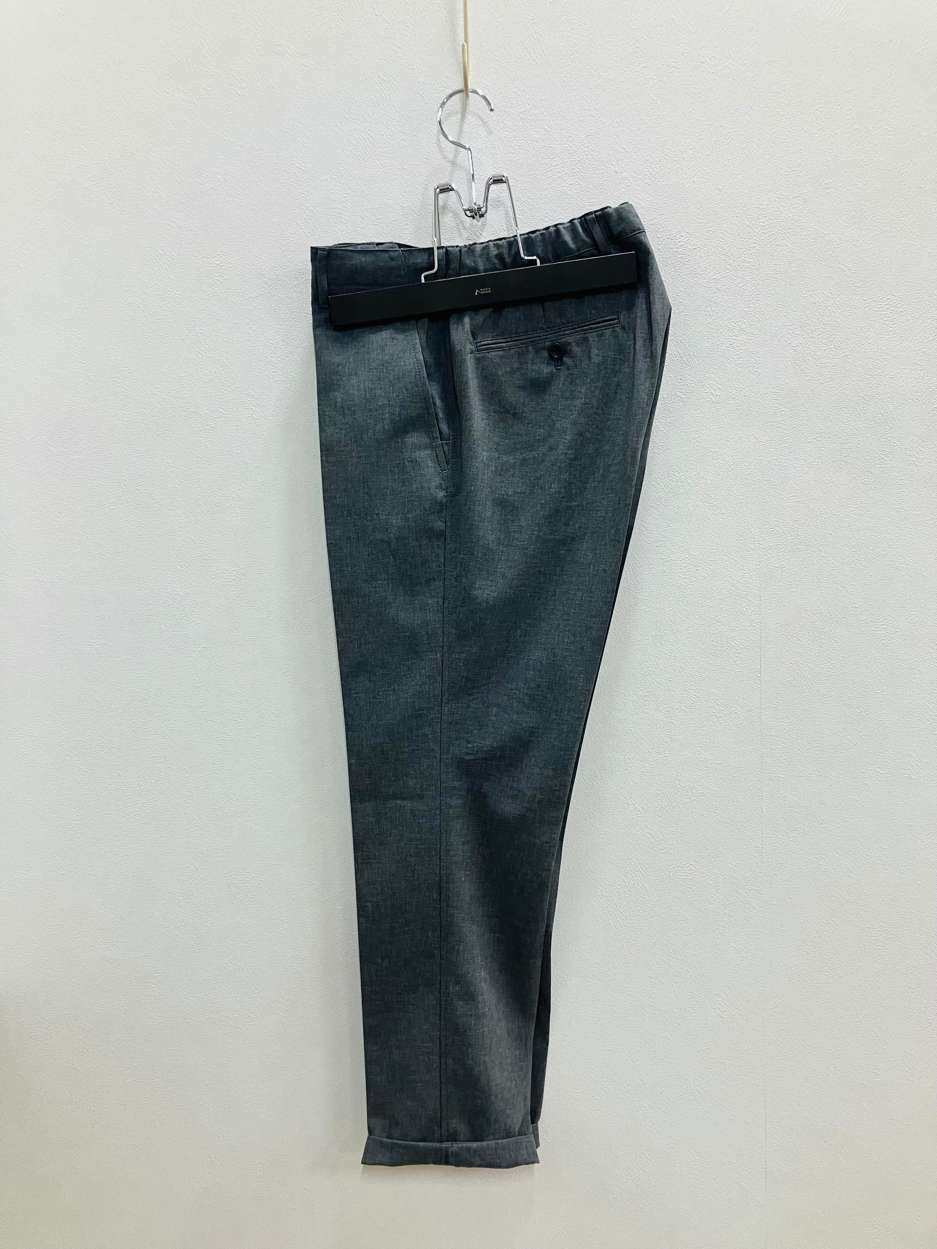 そのブランドよりトラベラーズベースが今季セレクトしたトラウザーズをご紹介させていただきます。展示会に伺い、まず見て生地の透け感が涼しそう(着用時,透け感無し)で、着用して軽い着心地と、鏡で見て着まわしやすいデザインが頭の中で微分積分…そして「これいい!」と心が躍った洋服です。