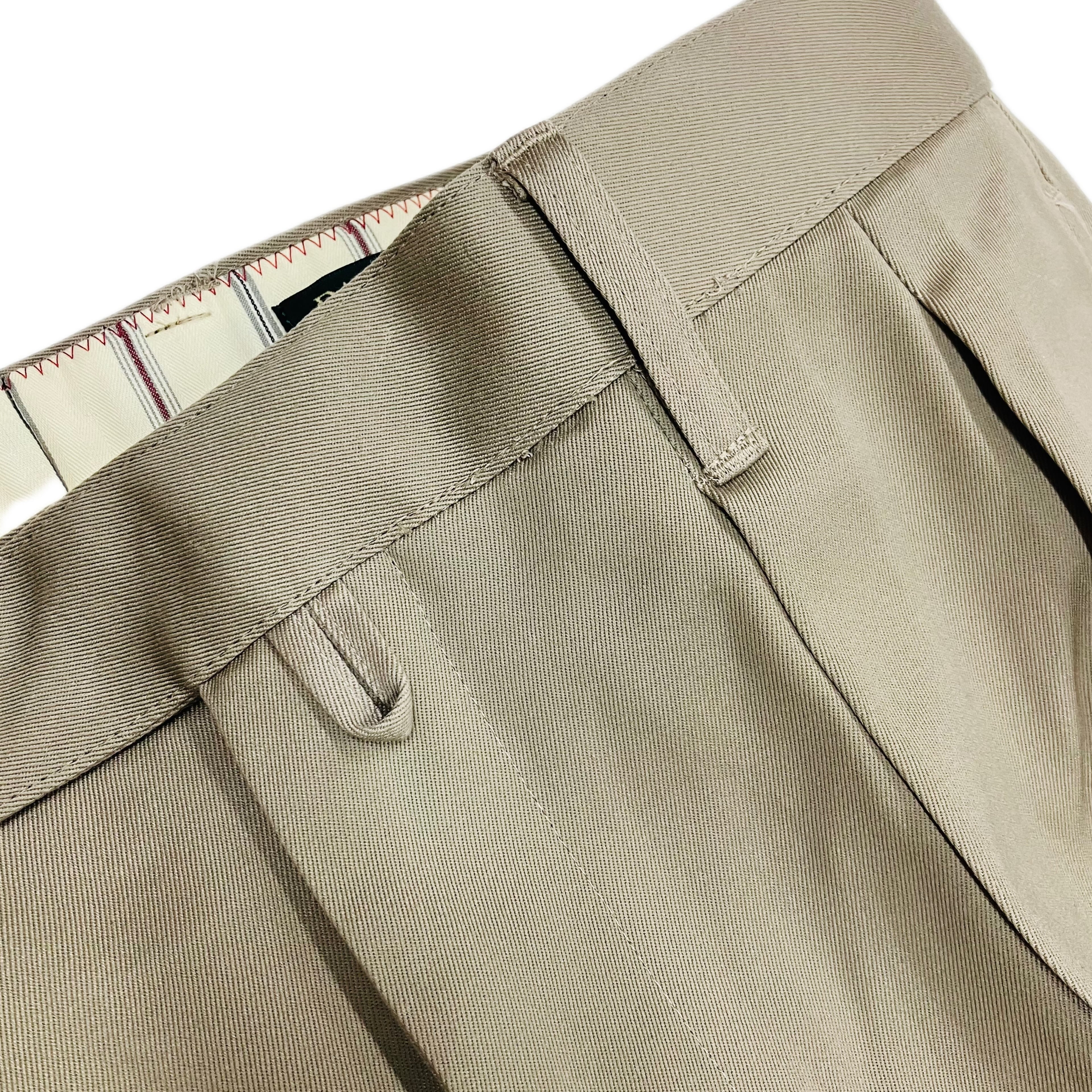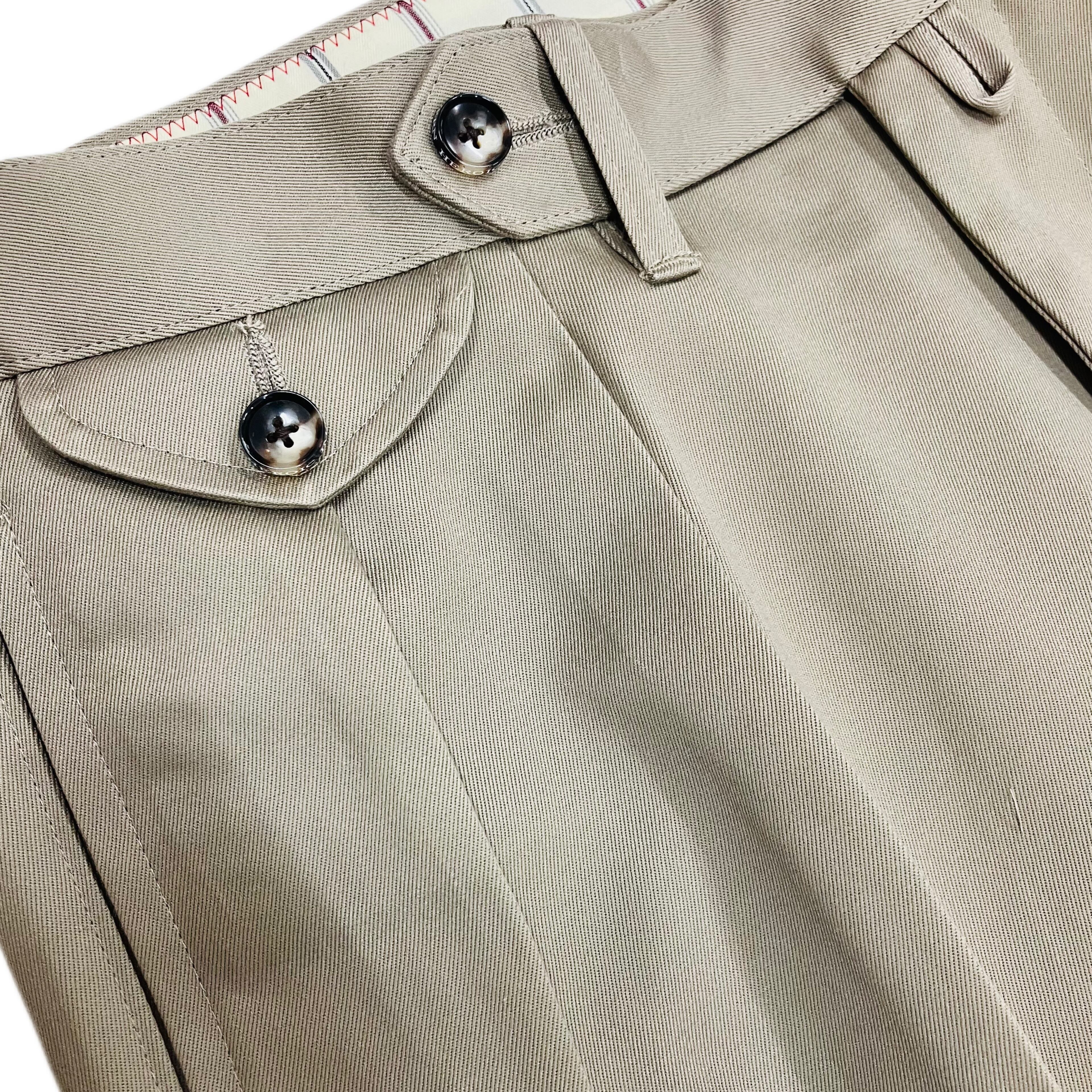 マッカーサーは陸軍GHQの中で服装規定違反の常習で、パンツは2プリーツのインタックを仕立てていました。懐中時計を愛用していて、絶えずウオッチポケットに入れていました。