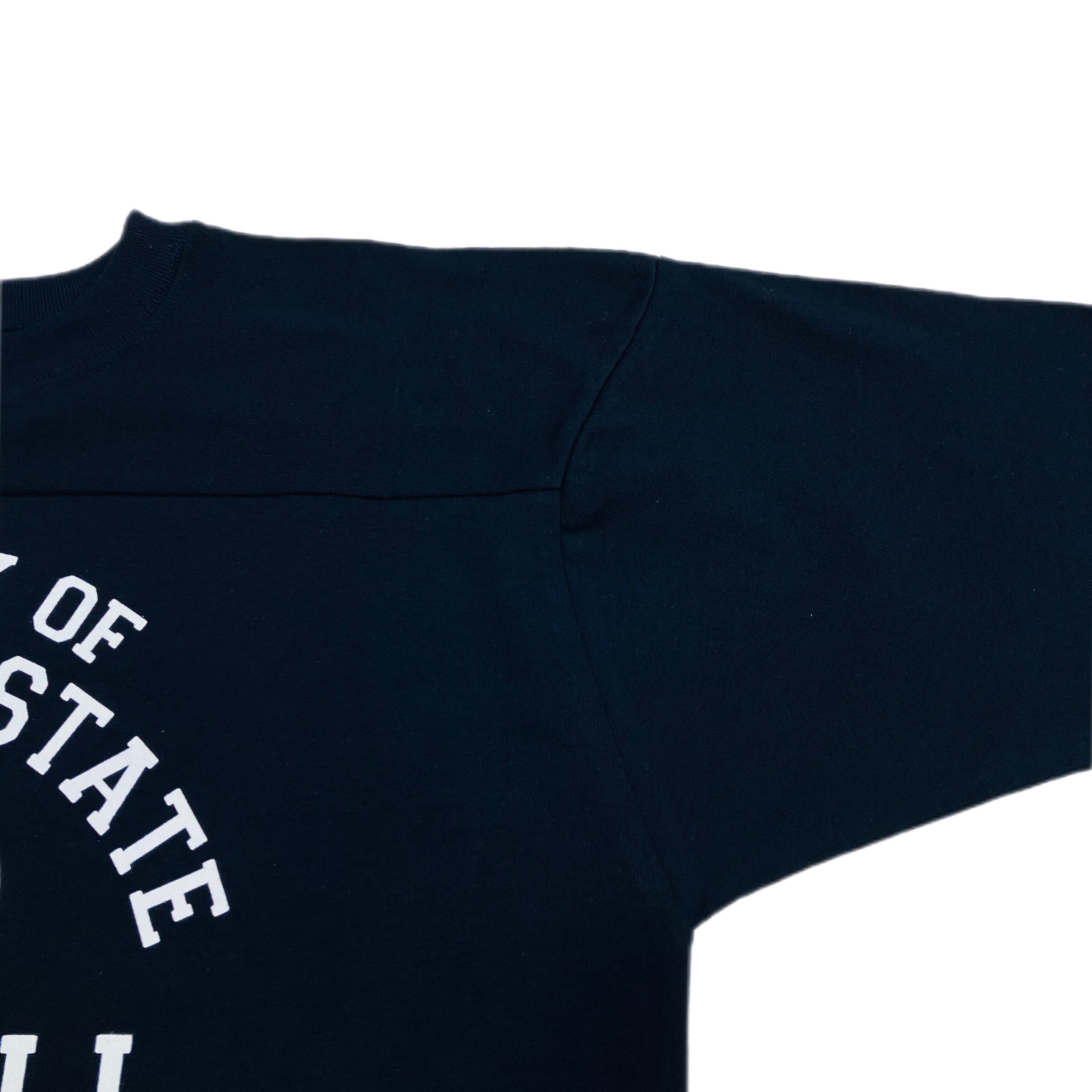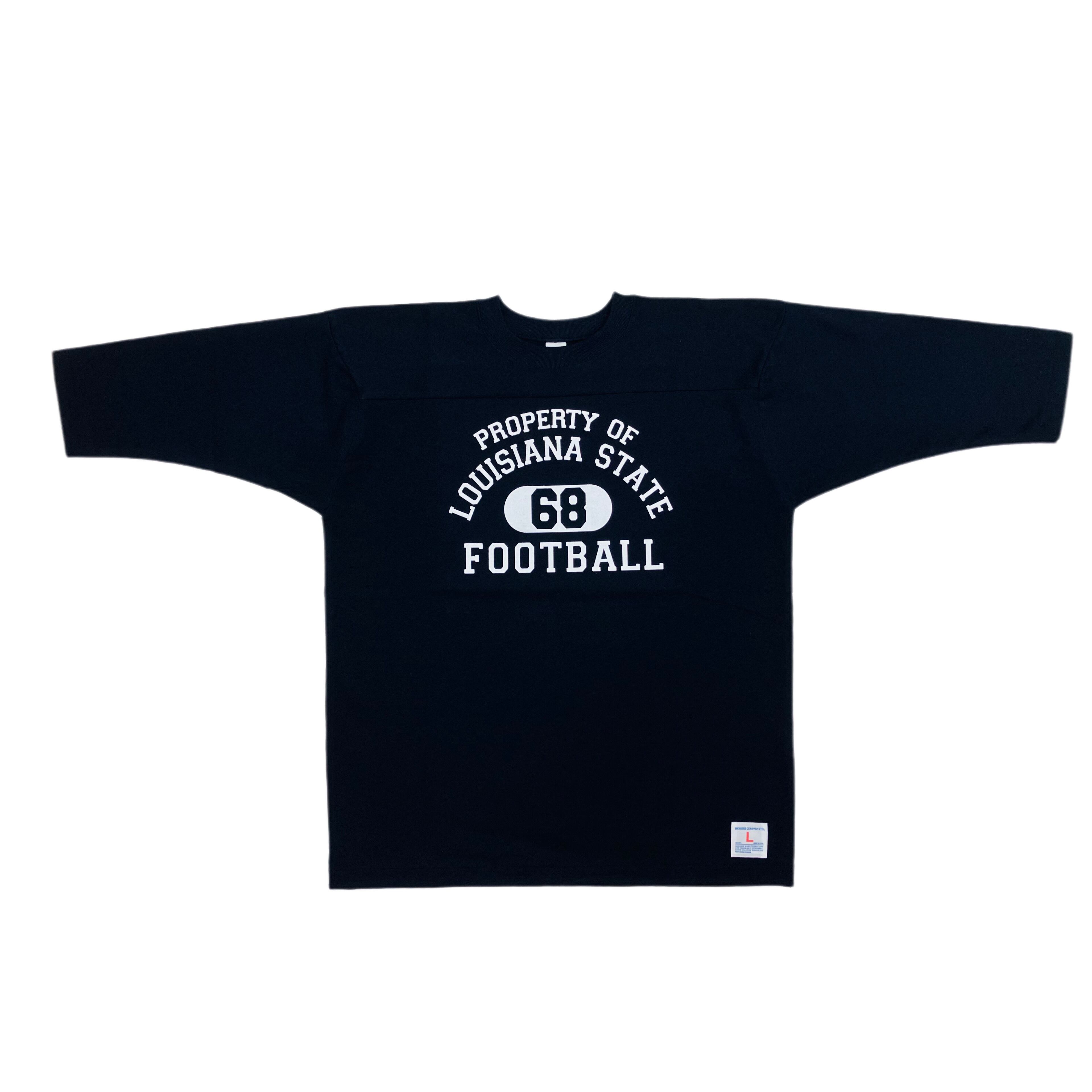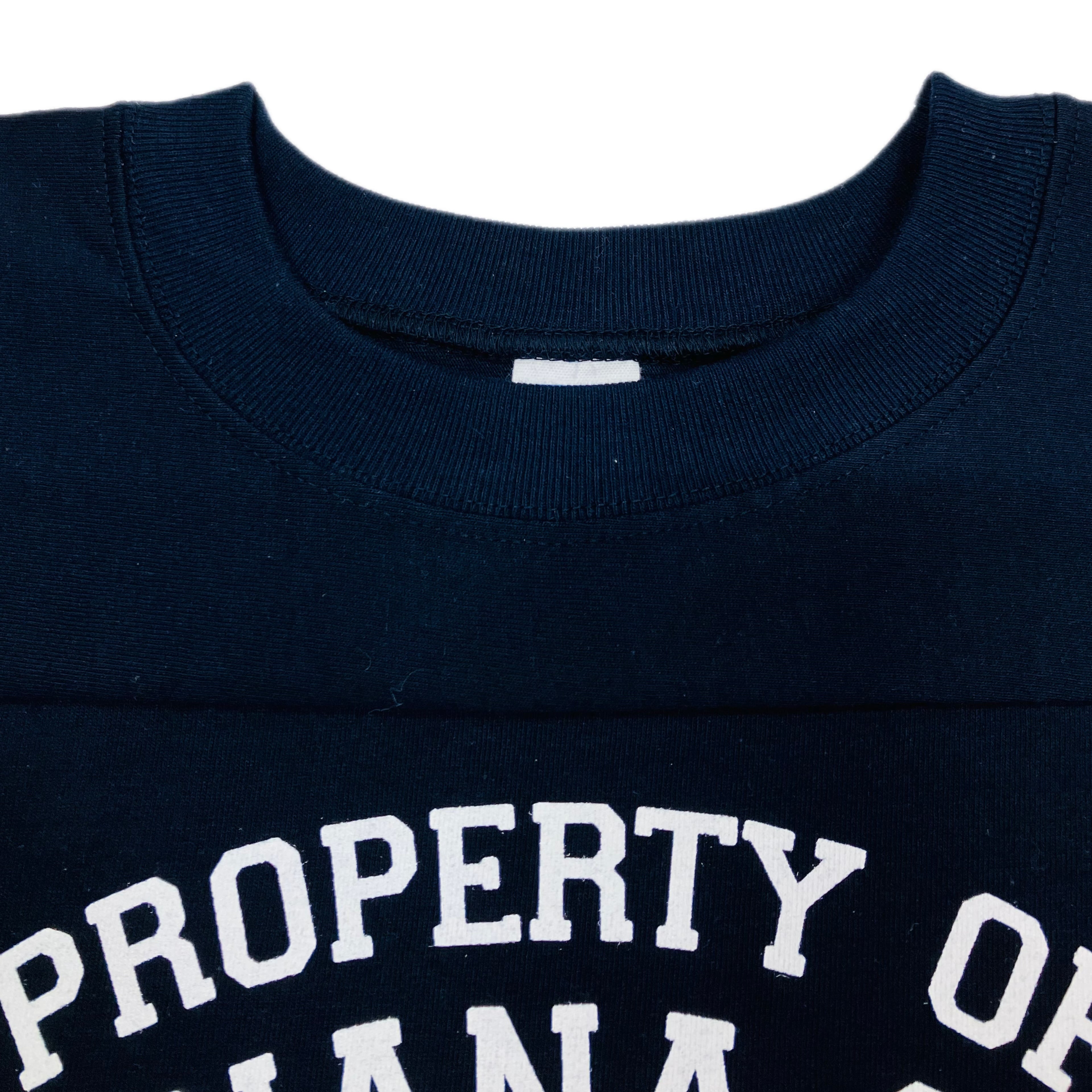 素材は16番単糸の天竺。糸の撚り方向に斜行しています。その若干ねじれた感じがビンテージ感のあるFootballTの感じ