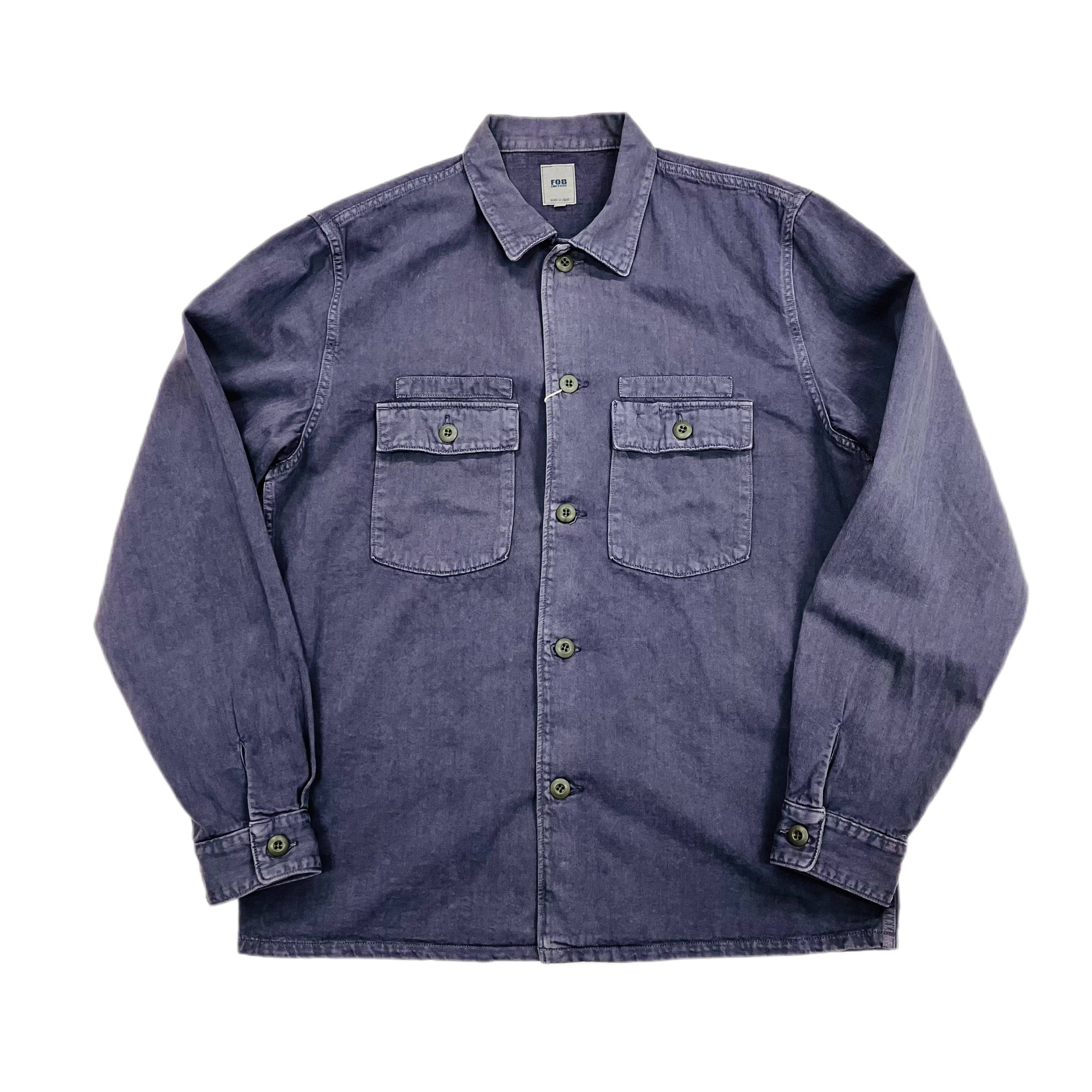 コットンリネンのランダムヒッコリーを製作。John Lenonが着用した事で有名な米軍のオリーブサテンシャツをデザインベースに製作。