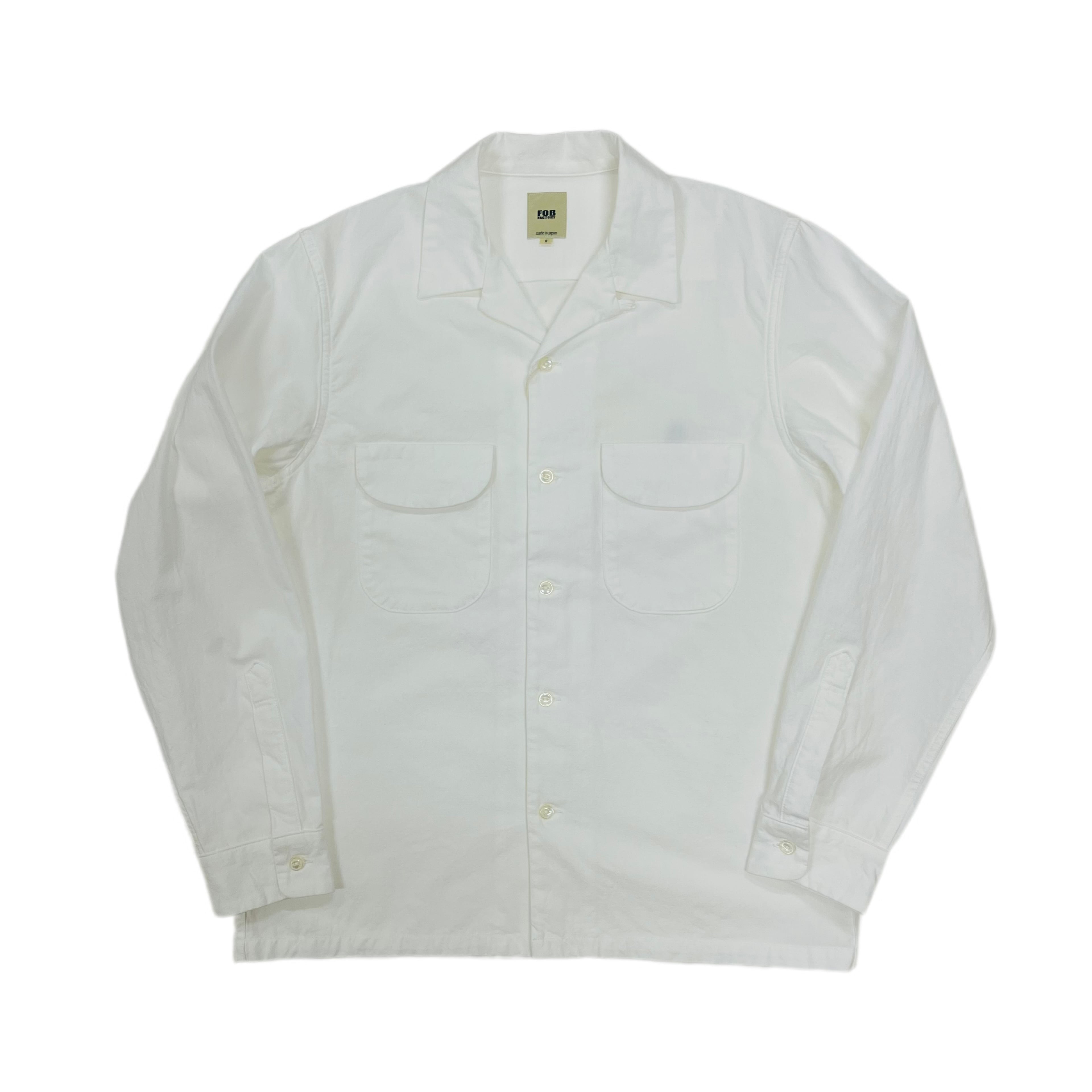 FOB FACTORY F3514 OPEN COLLAR SHIRT Col:WHITE