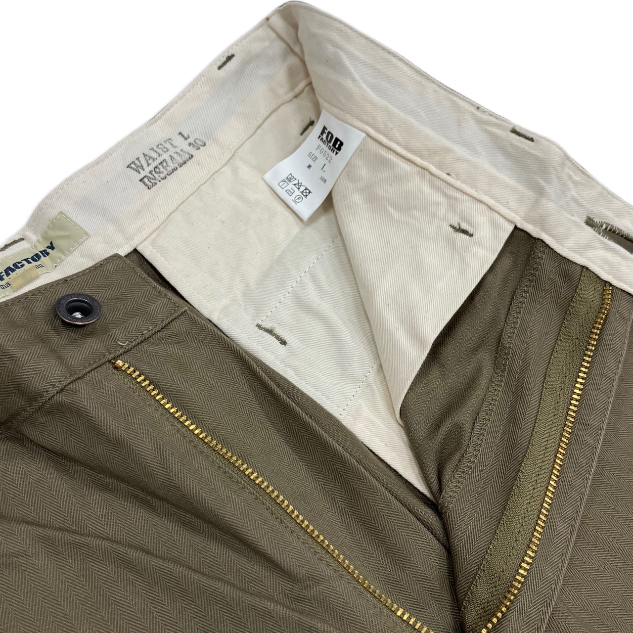 FOB FACTORY F0522 / VAT HERRINGBONE TROUSERS COL/14 OLIVE