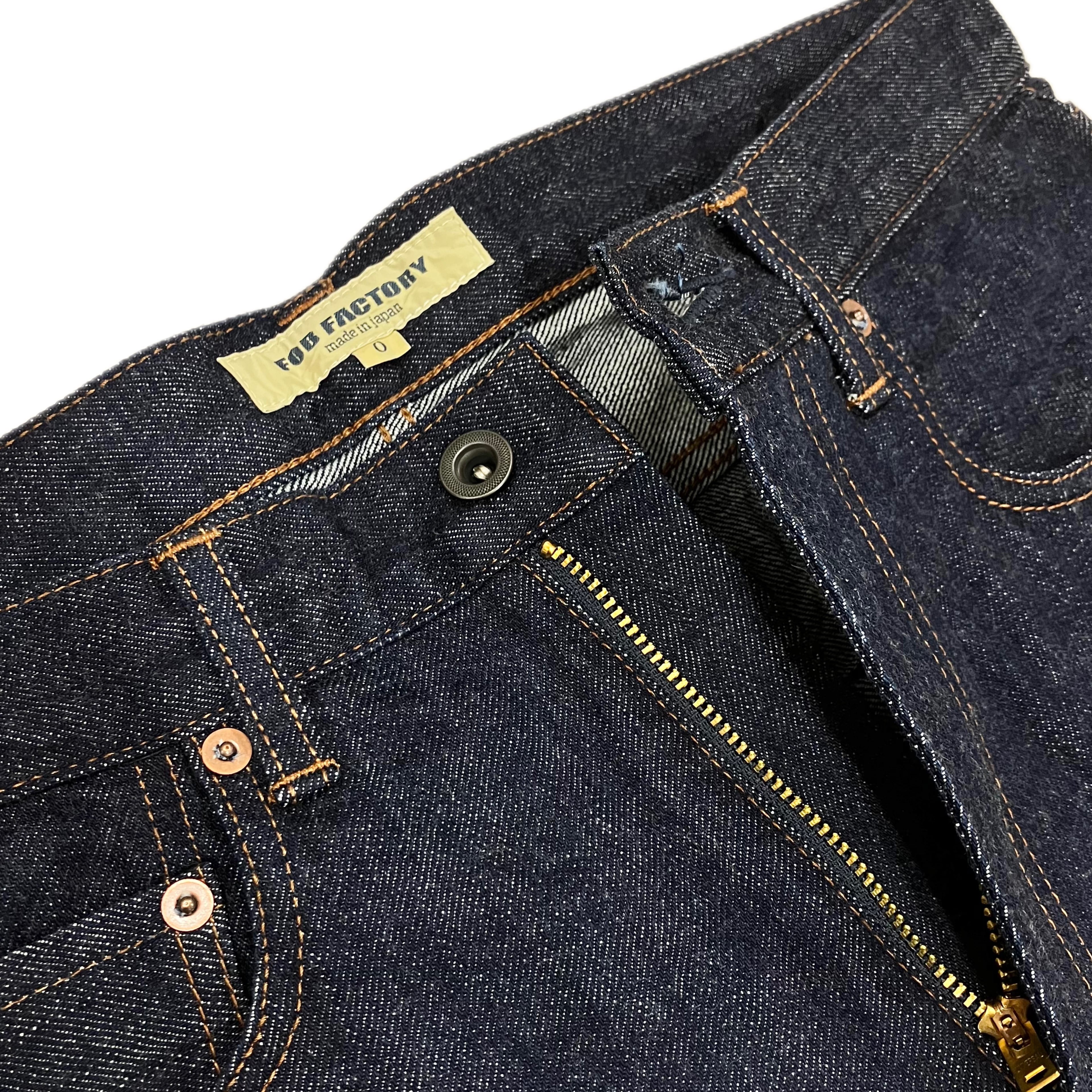 FOBの技術と現代の織機を用い、当時の国産第一号のデニムを再現した14ozのセルビッチデニムは深い藍色と立体的な表情に。「新品のヴィンテージ」のようなデニムは、穿きこむ程にあなただけのアタリと色落ちが生まれ、世界で一本だけのジーンズへと成長していきます。