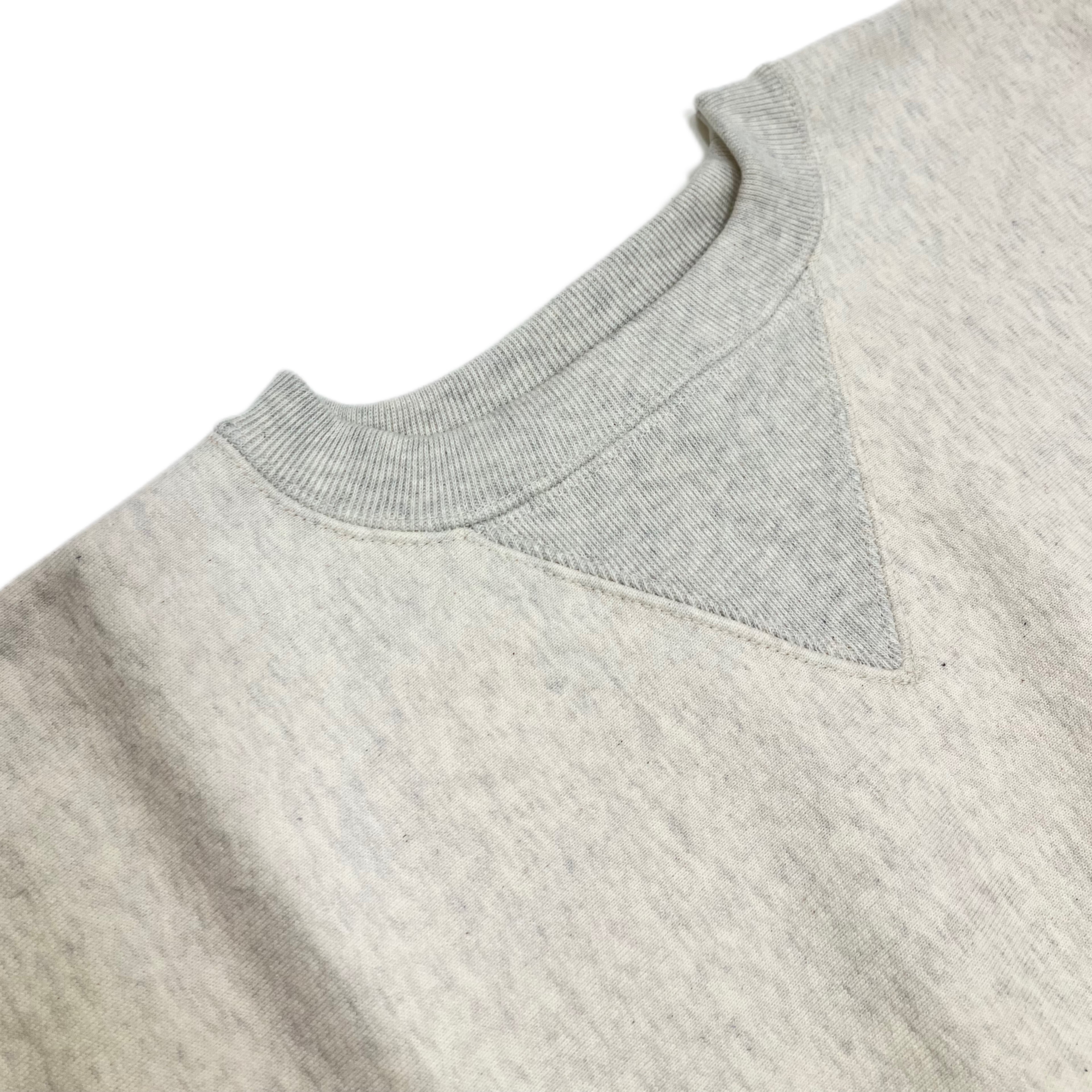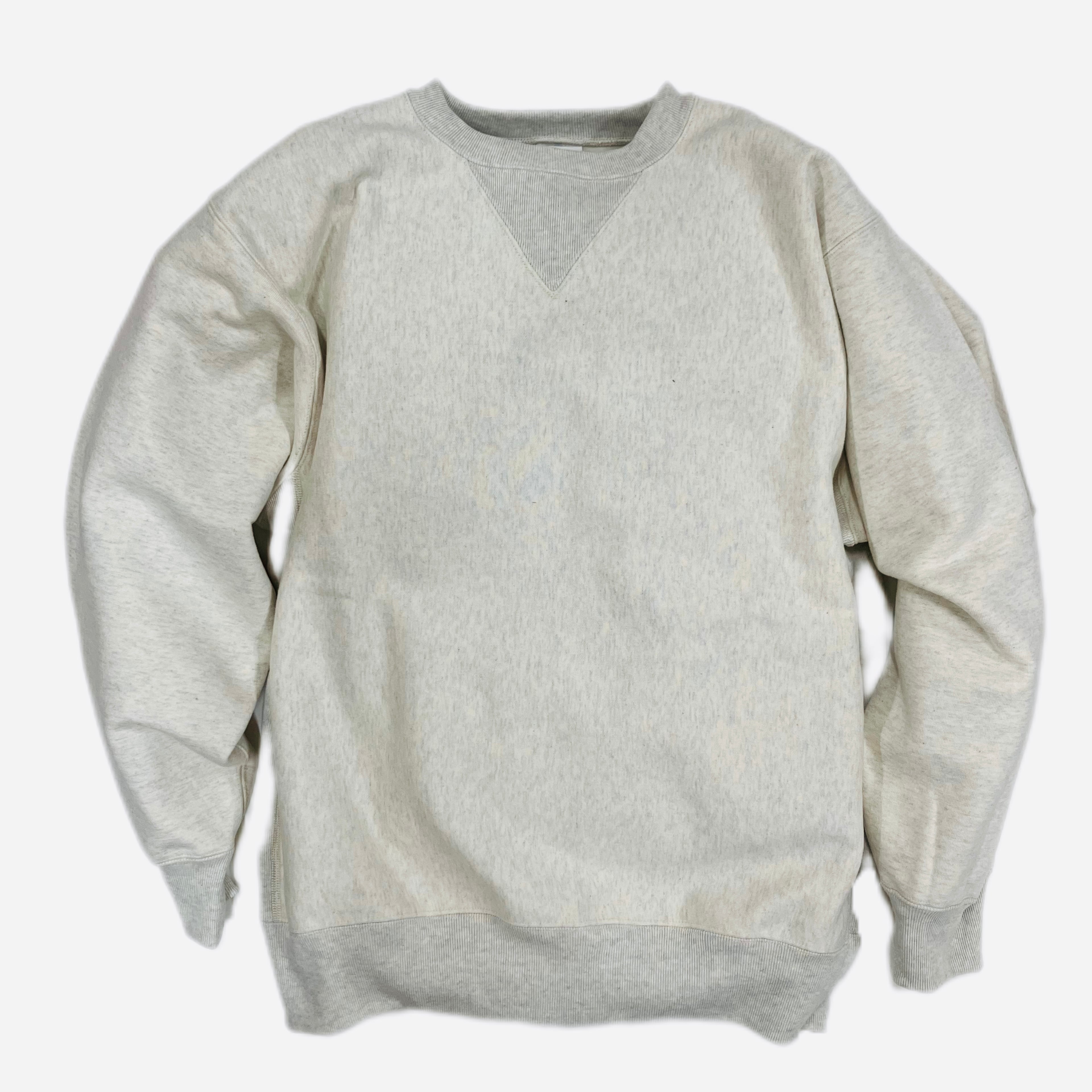 WORKERSさんの新作は80年代〜90年代位のトリコタグのクルーネックとパーカが元ネタです。前Vは、はめ込み式のガゼット。スエット生地は縦方向↑に縮みが出やすいという事もあり、身頃は横方向←→で裁断してあります。脇に伸縮性のあるリブパーツを切り替えでセット。身頃が横方向→←に縮んでも大丈夫という構造のトレーナーです。