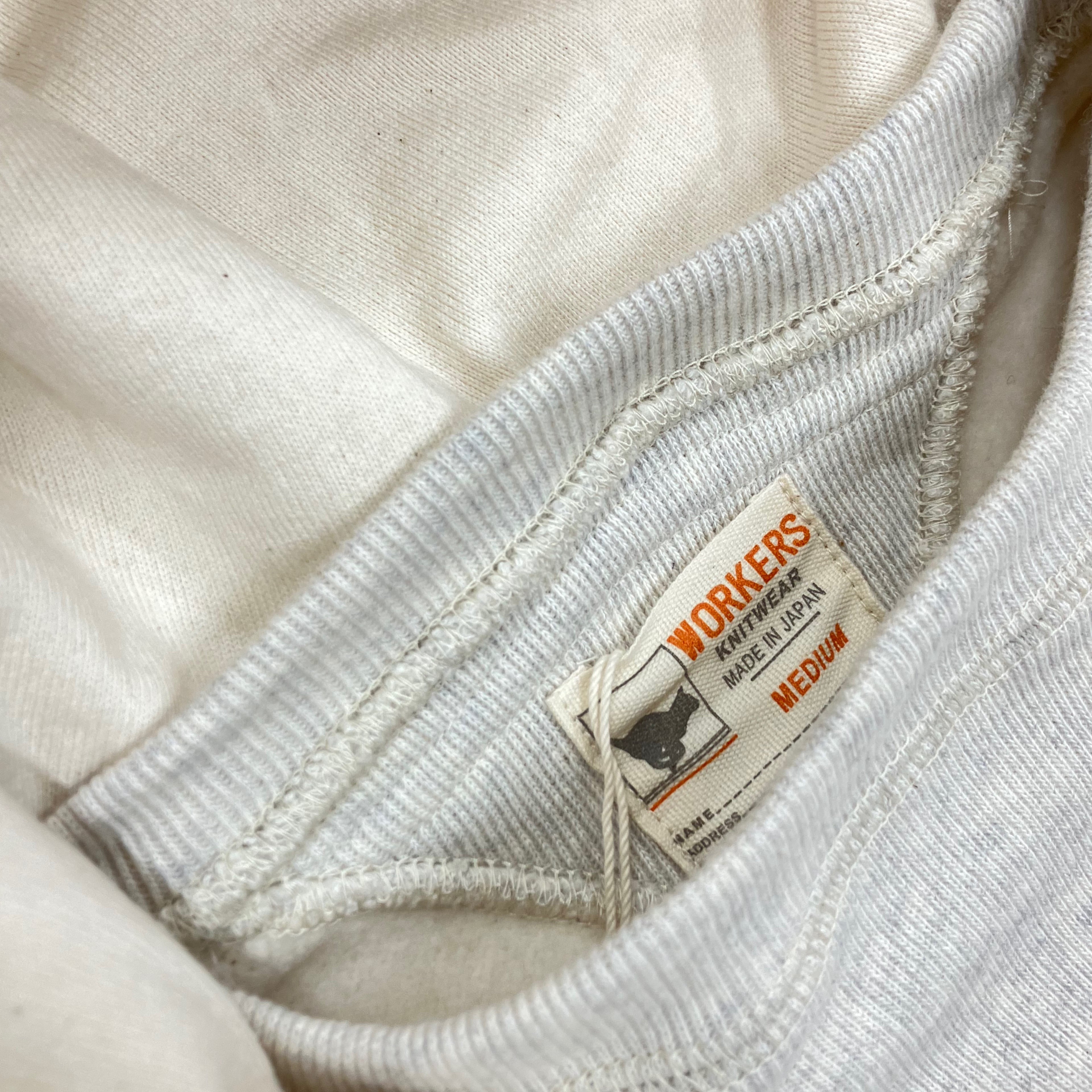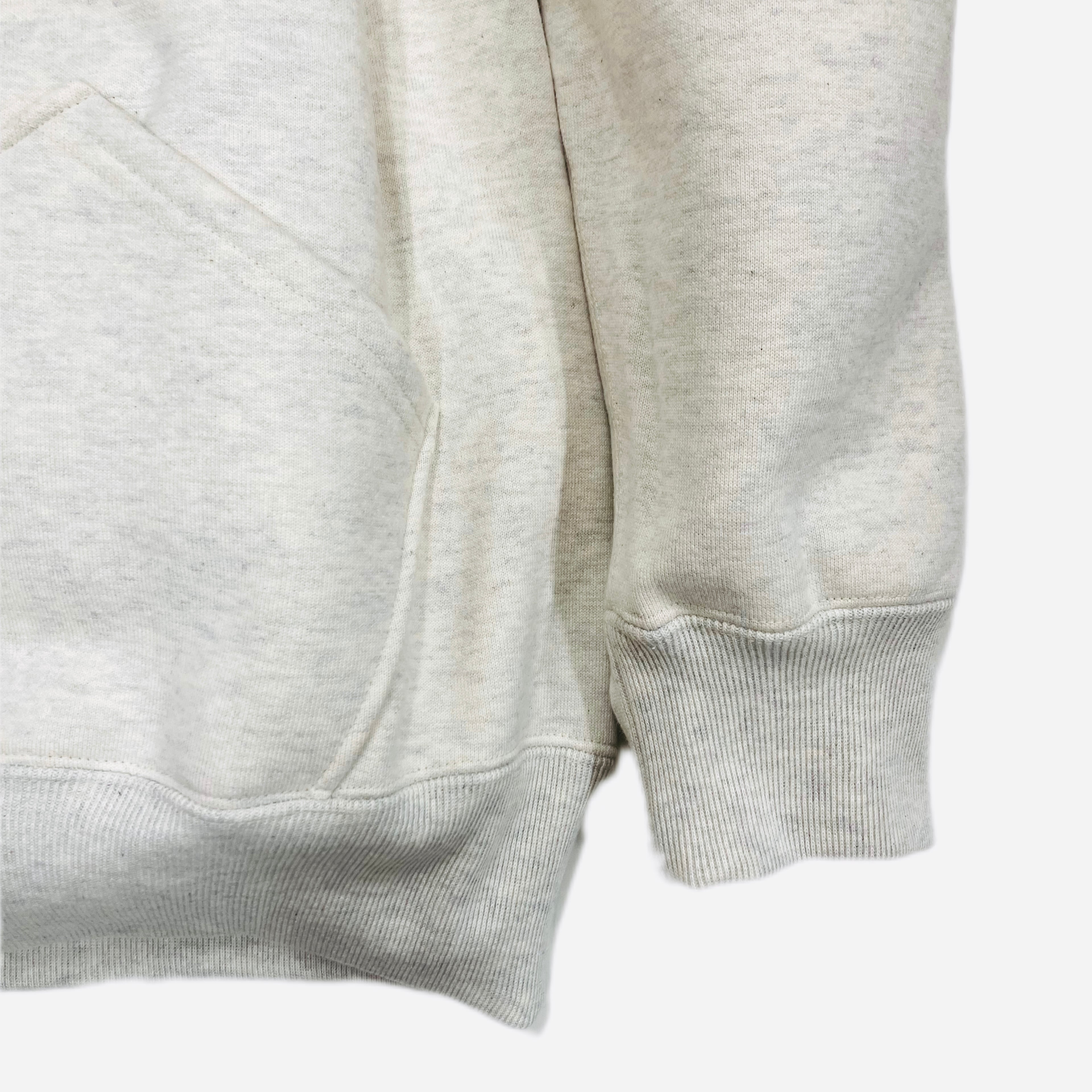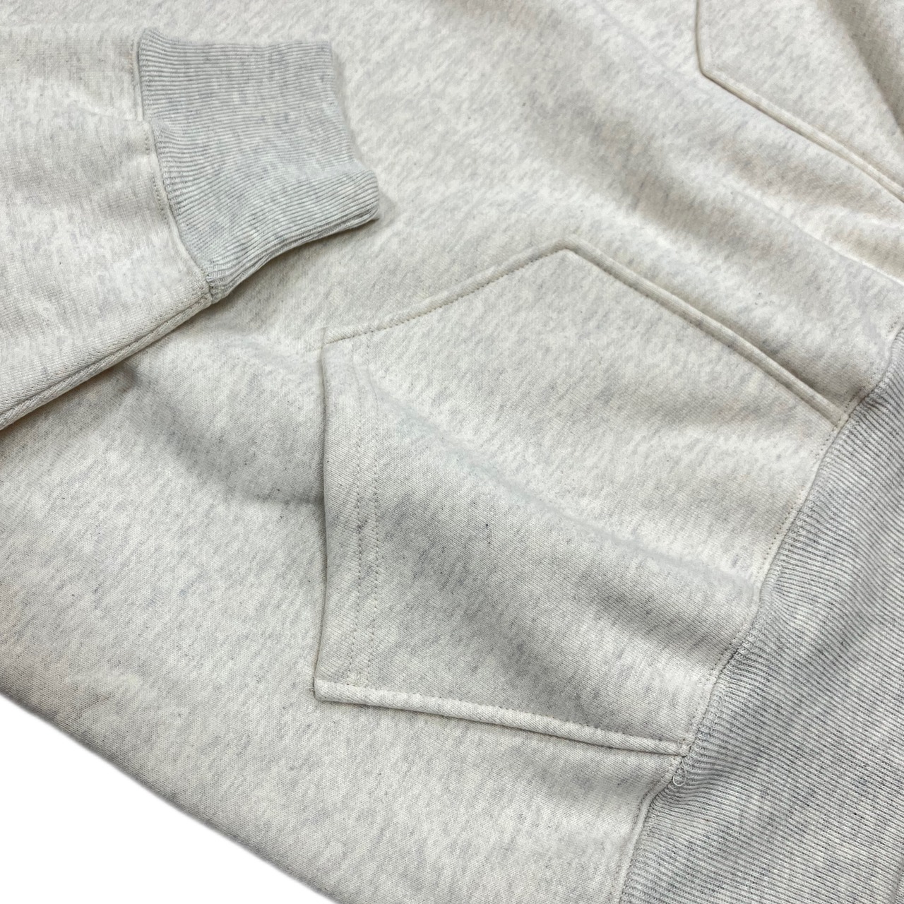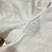 素材•糸についてのご説明をさせていただきますと、表糸•中糸(表生地と裏生地を繋ぐ糸)•裏糸共に綿糸を用いているので、細かなところですが、化繊素材を混ぜた生地とは違い、フワッと柔らかく、裏起毛も抜群の温かさで、着心地の良い本格的冬用スエットに仕上がっています。